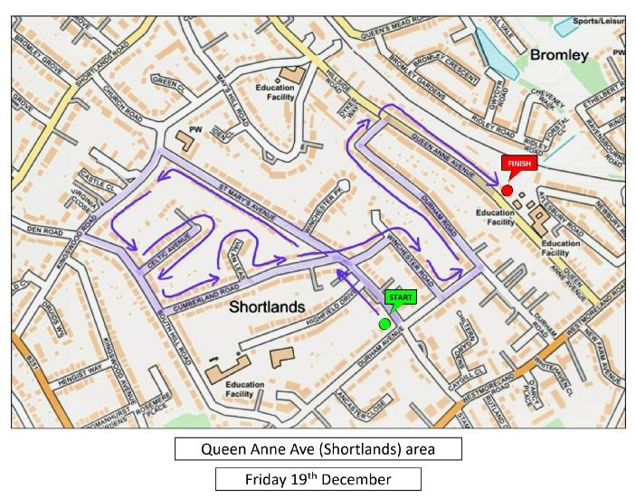 Sleigh, Santa and Helpers, to be at the start point no later than 5:30 pm