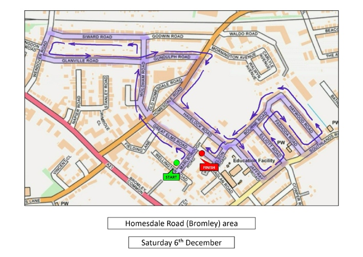Sleigh, Santa and Helpers, to be at the start point no later than 5:30 pm
