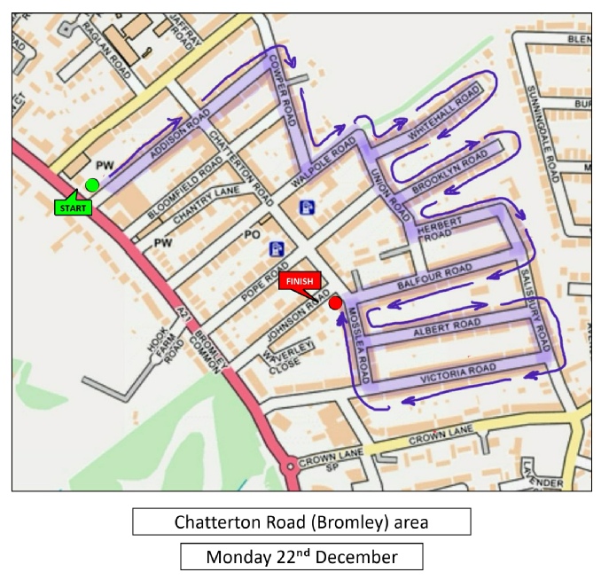 Start Point: Junction of Addison Road and A21 Bromley Common
