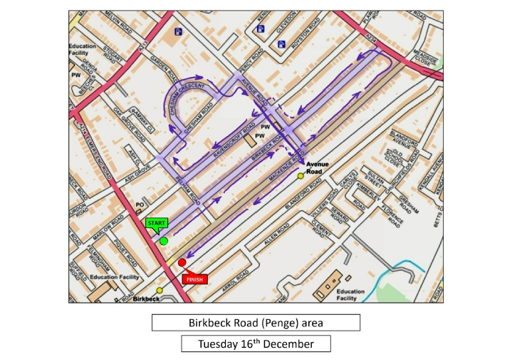 Start Point: Junction of Birkbeck Road and Elmers End Road.