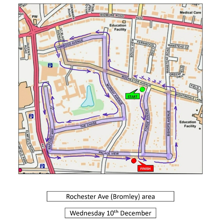 Start Point: Junction of Forde Ave and Rochester Avenue.